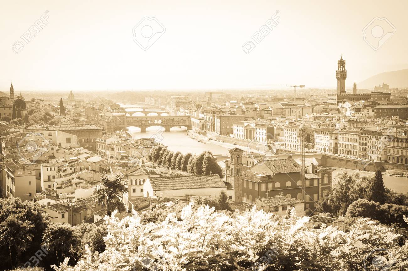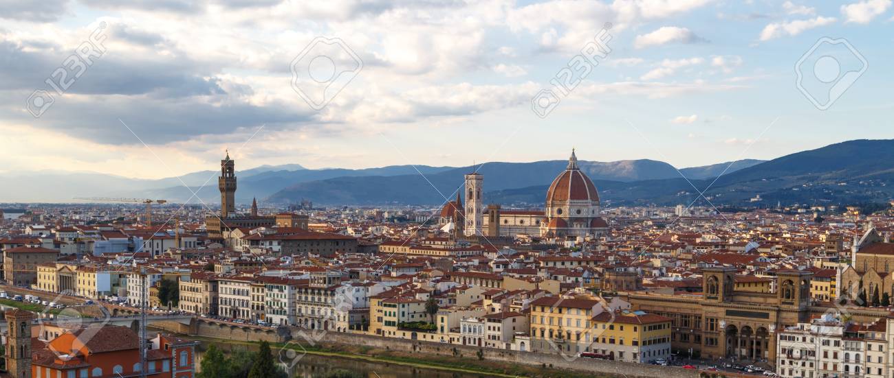 Immagini Stock Vista Superiore Della Citta Di Firenze Con I Vecchi E Storici Edifici Su Alba Nuvoloso O Sfondo Cielo Al Tramonto Image 52908903
