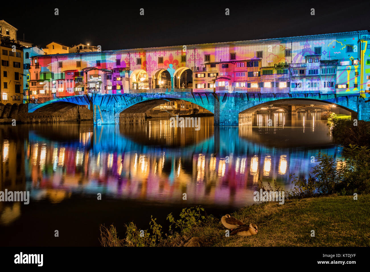 Firenze Tuscany The Famous Ponte Vecchio Illuminated By The Magic Stock Photo Alamy