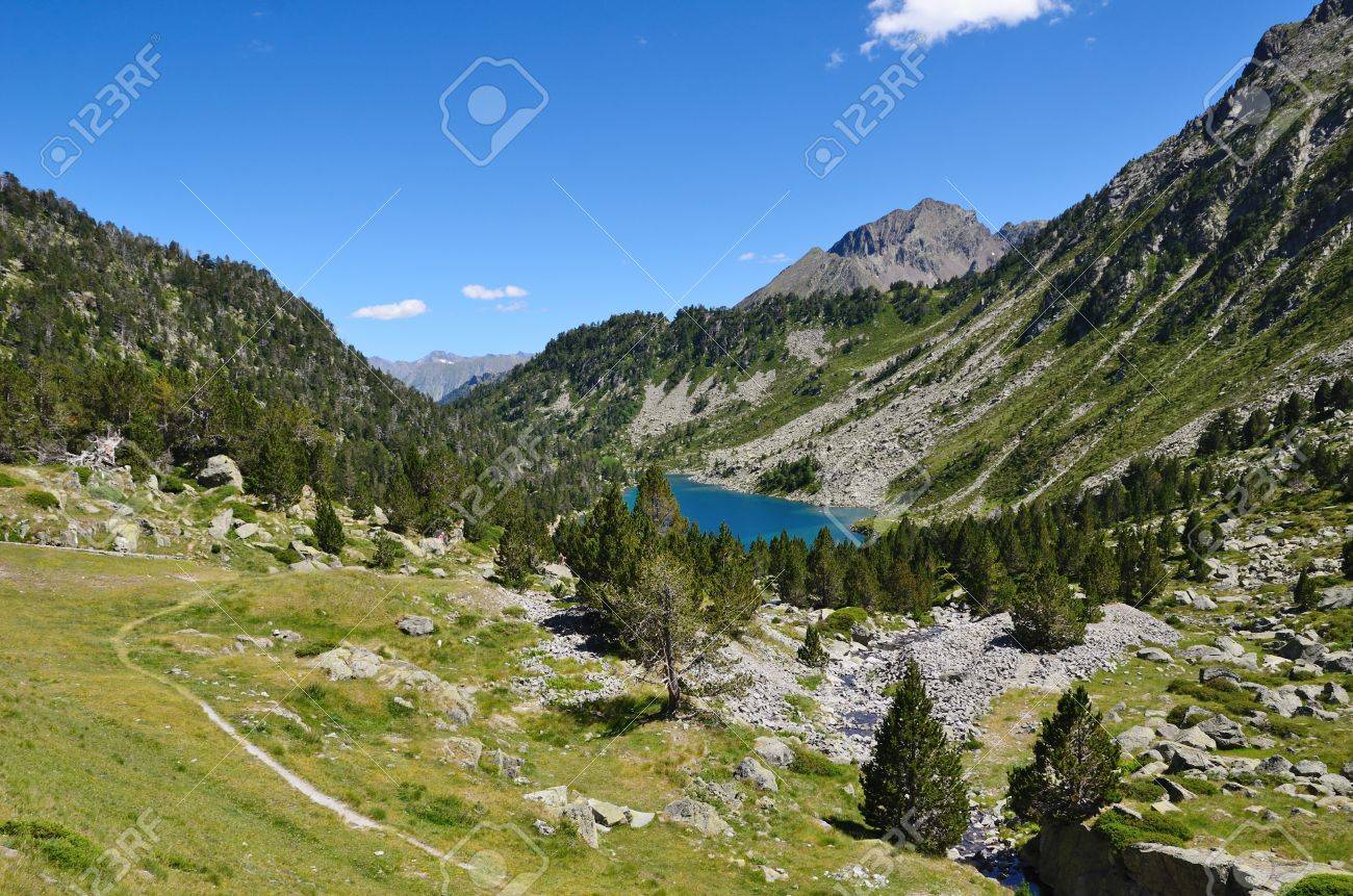 Immagini Stock Riserva Naturale Neouvielle Ha Laghi Di Montagna E Ricca Flora E Fauna Le Pendici Sono Ricoperte Di Pini Mughi Nani Les Laquettes E Ben In Vista Image 19756402
