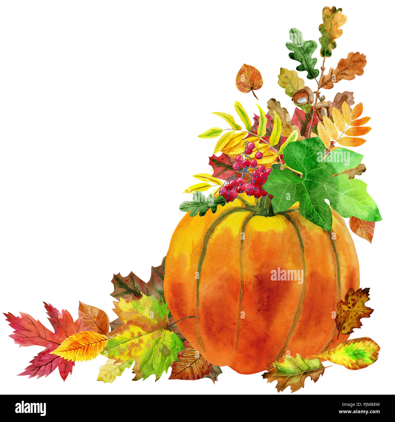 Acquerello Di Zucca E Foglie Di Autunno Foto Stock Alamy