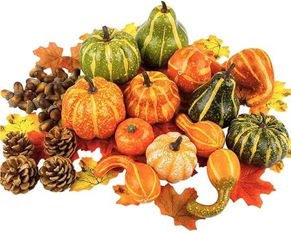 Set Di Zucche Artificiali Da 50 Pezzi Set Di Decorazioni Autunnali Artificiali Kit Di Decorazione Di Bacche Di Ghiande Di Foglie Di Zucca E Ghiande Amazon It Casa E Cucina