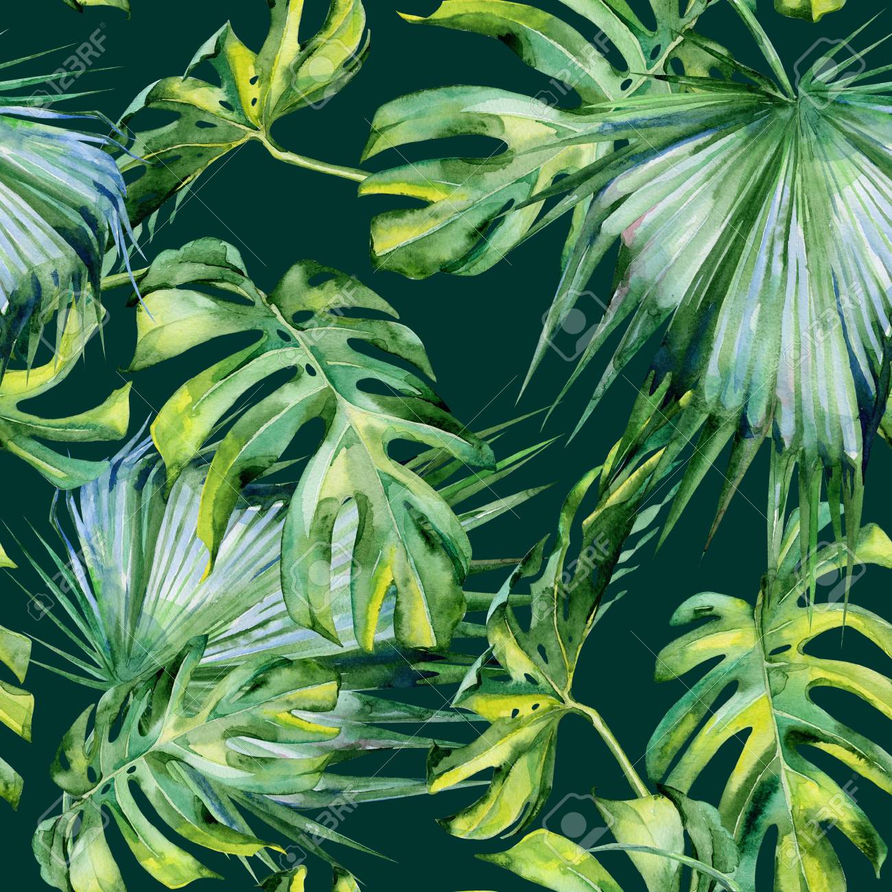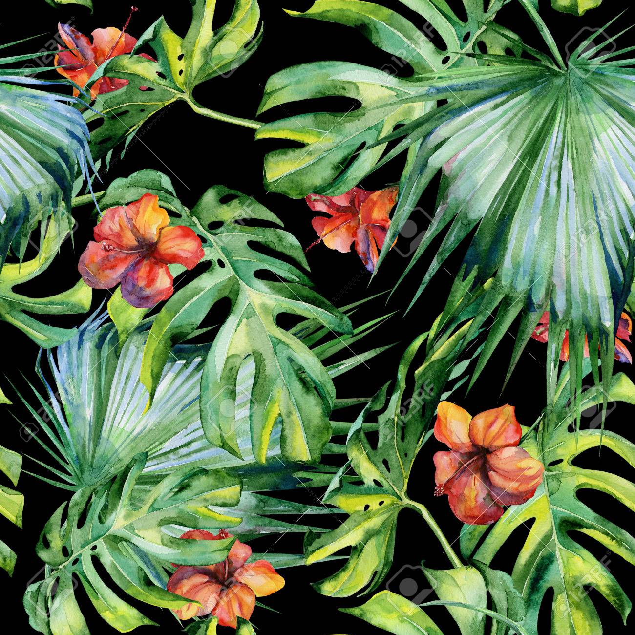 Seamless Tropicale Con Foglie Sfondo Acquerello Con Foglie Tropicali Carta Da Parati Carte Da Parati Beatiful Foresta Pluviale Tropici Myloview It