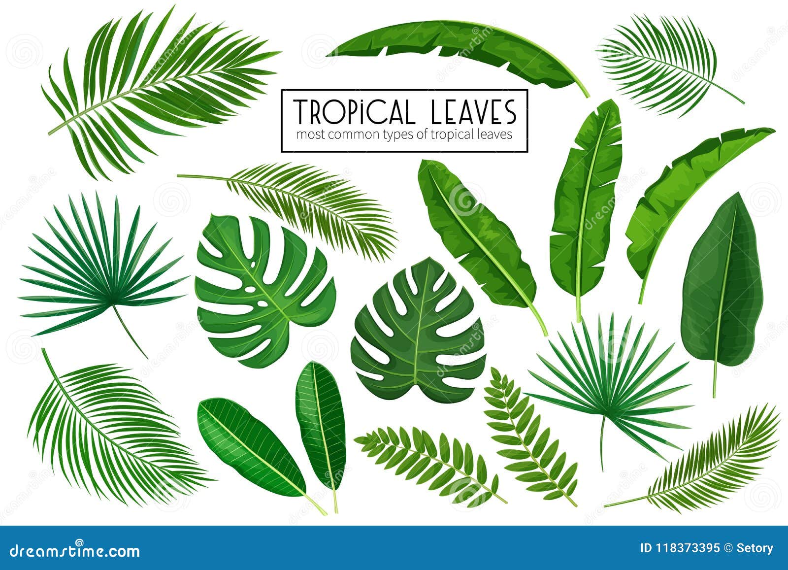 Foglie Tropicali Stabilite Illustrazione Vettoriale Illustrazione Di Floreale 118373395
