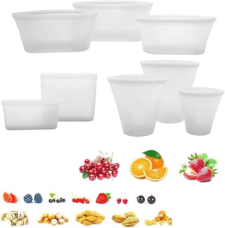 Heitign 8 Pz Riutilizzabili Contenitori Per Alimenti In Silicone Con Chiusura A Cerniera Sacchetti Per Alimenti Gratuiti Per Frutta E Verdura Lavastoviglie A Microonde E Congelatore Bianco Amazon It Casa E Cucina