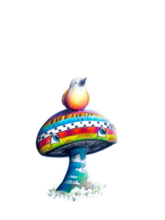 Fungo Print Art Di Uccello Funghi Art Arte Per I Bambini Etsy