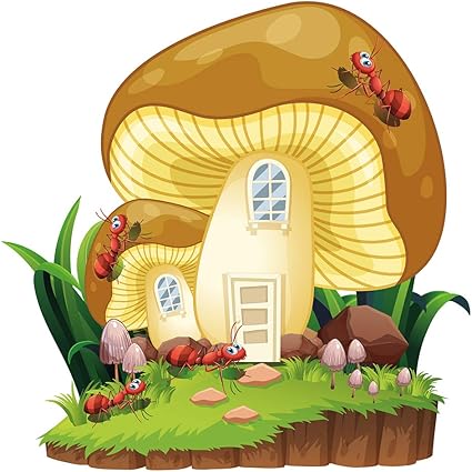Adesivo Murale Camera Per Bambini Fungo Casa Di Funghi Con Formiche Sul Prato F Amazon It Prima Infanzia