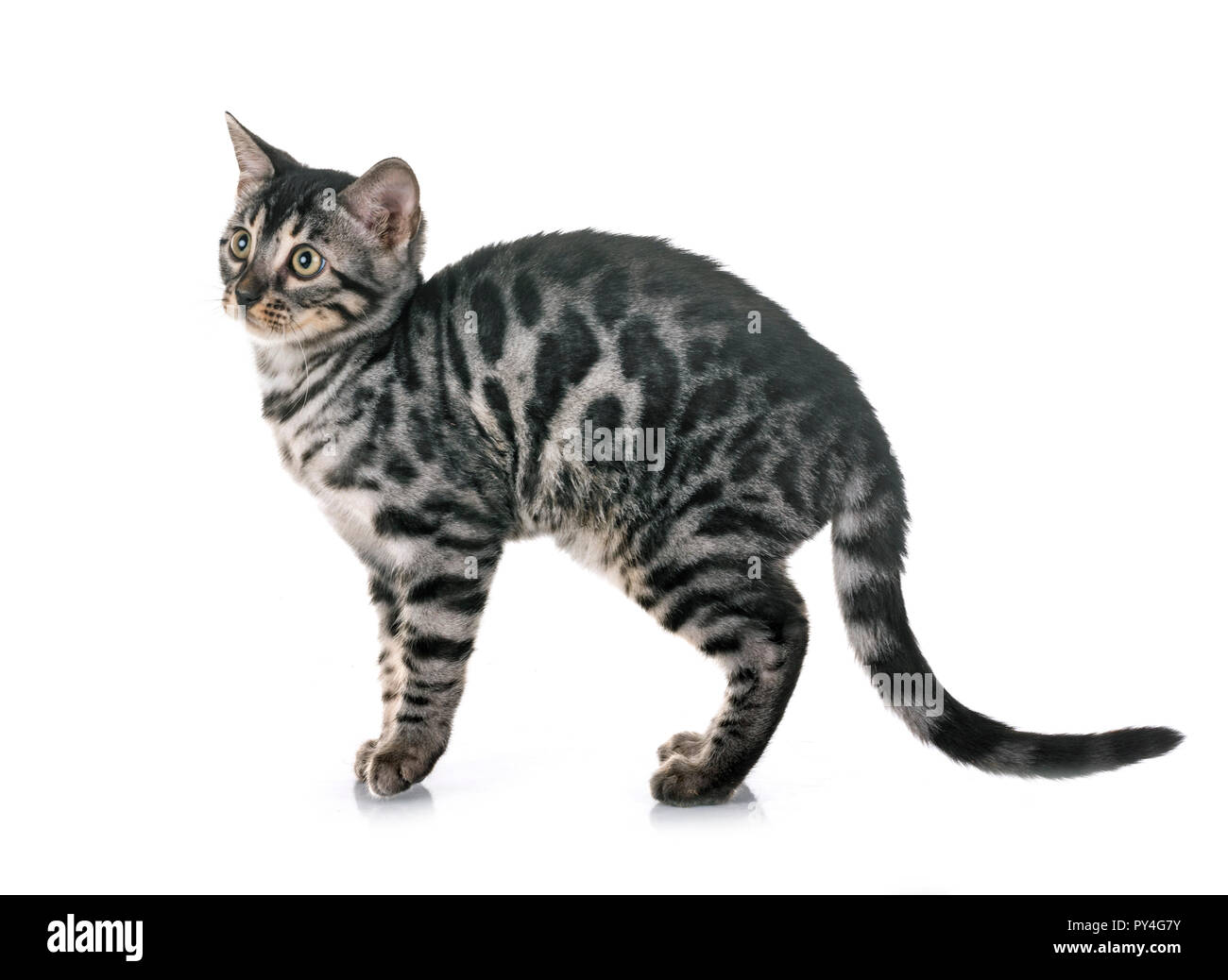 Gatto Bengala Davanti A Uno Sfondo Bianco Foto Stock Alamy