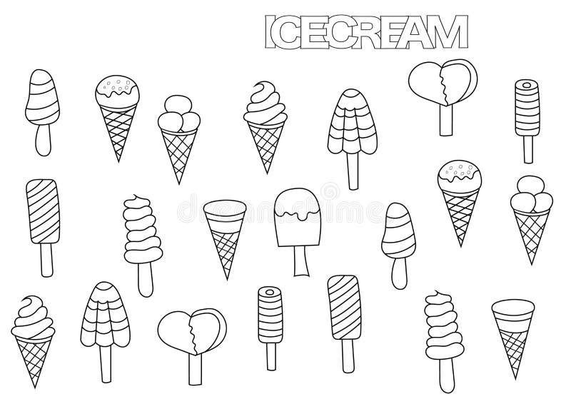 Hand Drawn Ice Cream Set Coloring Book Page Template Stock Vector Illustration Of Comic Flavor 79511092