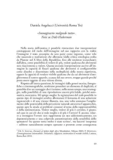 Pdf Immaginario Malgrado Tutto Note Su Didi Huberman In Fotografia E Culture Visuali Del Xx Secolo A Cura Di E Menduni E G Ravesi Roma Tre E Press Roma 2018 Pp 69 75 Daniela