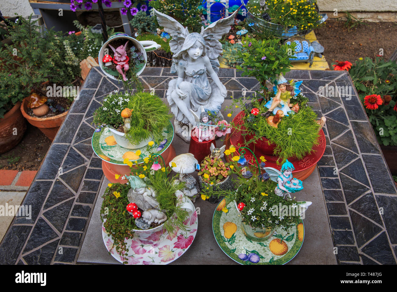 Miniatura Da Tavolo Giardino Fiabesco Con Teiere E Teacups Utilizzati Come Vasi Di Fiori Con Temi Da Favola E Statuine In Miniatura Foto Stock Alamy