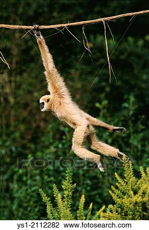 Gibbone Bianco Dato Hylobates Lar Spostamento Appendere Da Liana Archivio Immagini Ys1 2112282 Fotosearch