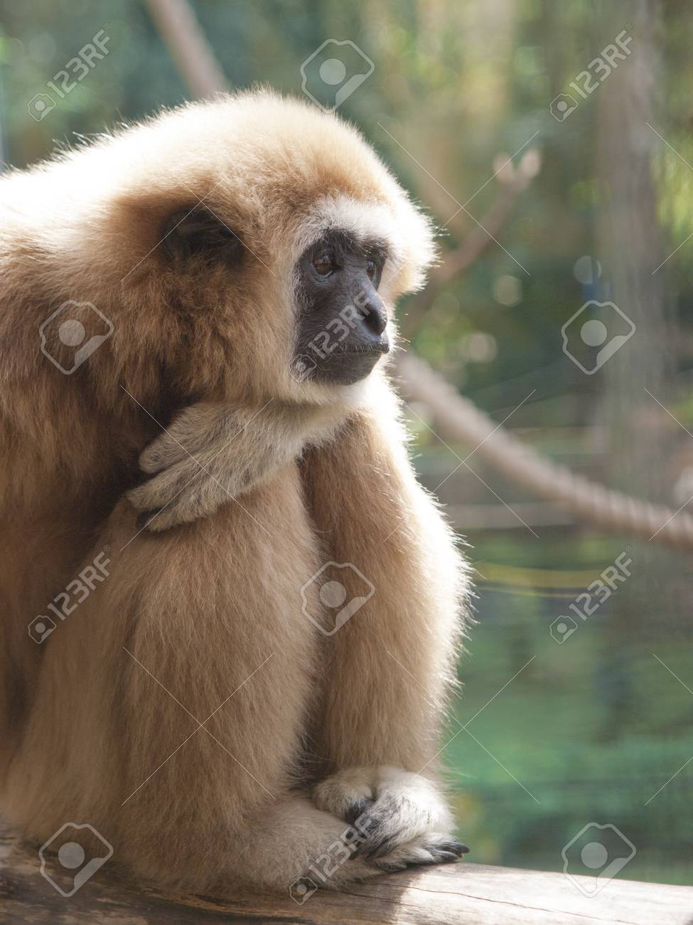 Immagini Stock Un Maschio Adulto Gibbon Scimmia Gibbone Hylobates Lar E Seduto Con Le Gambe Tirate Su E La Testa Appoggiata Sulle Ginocchia In Una Posa Pensosa O Triste Image 88643119