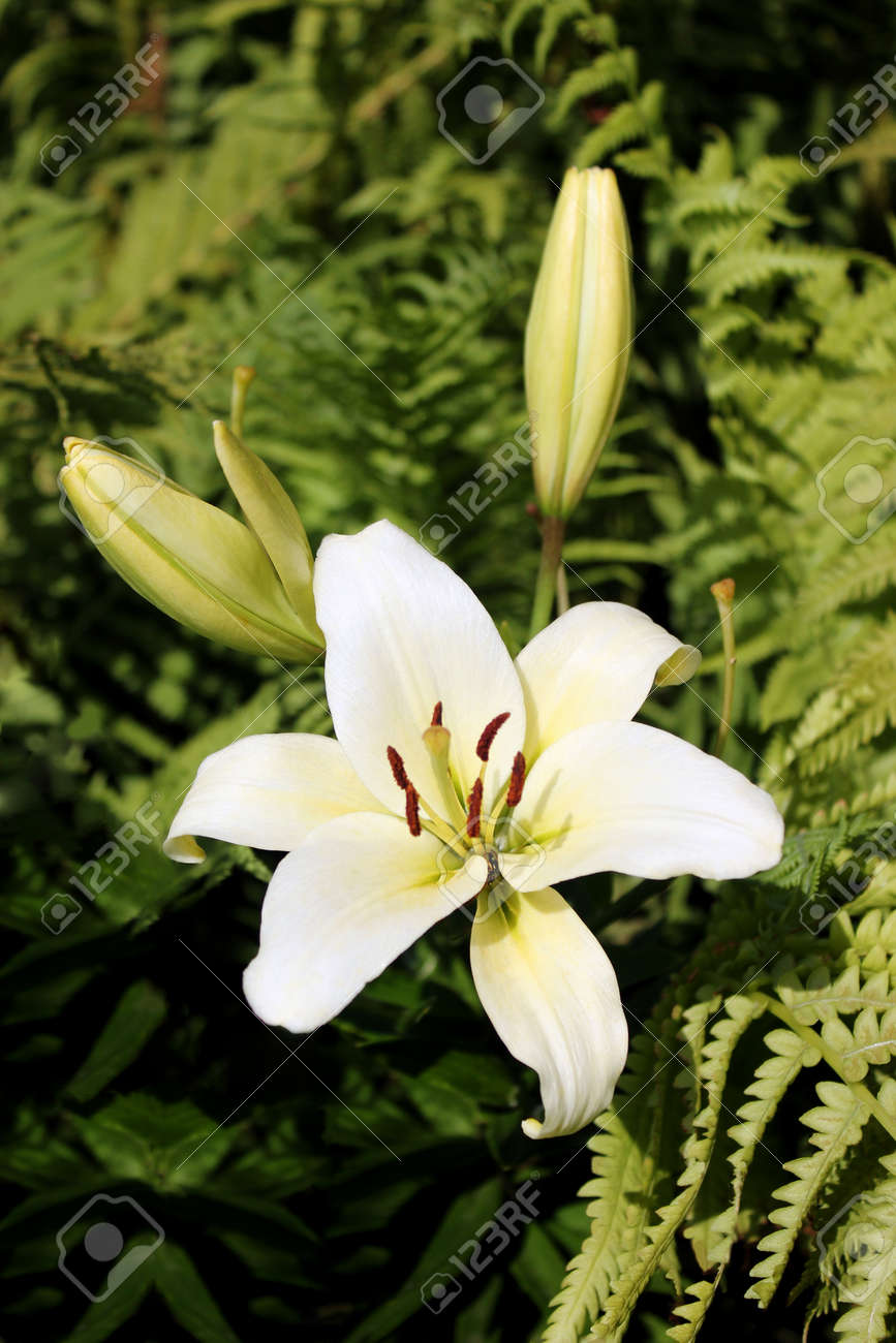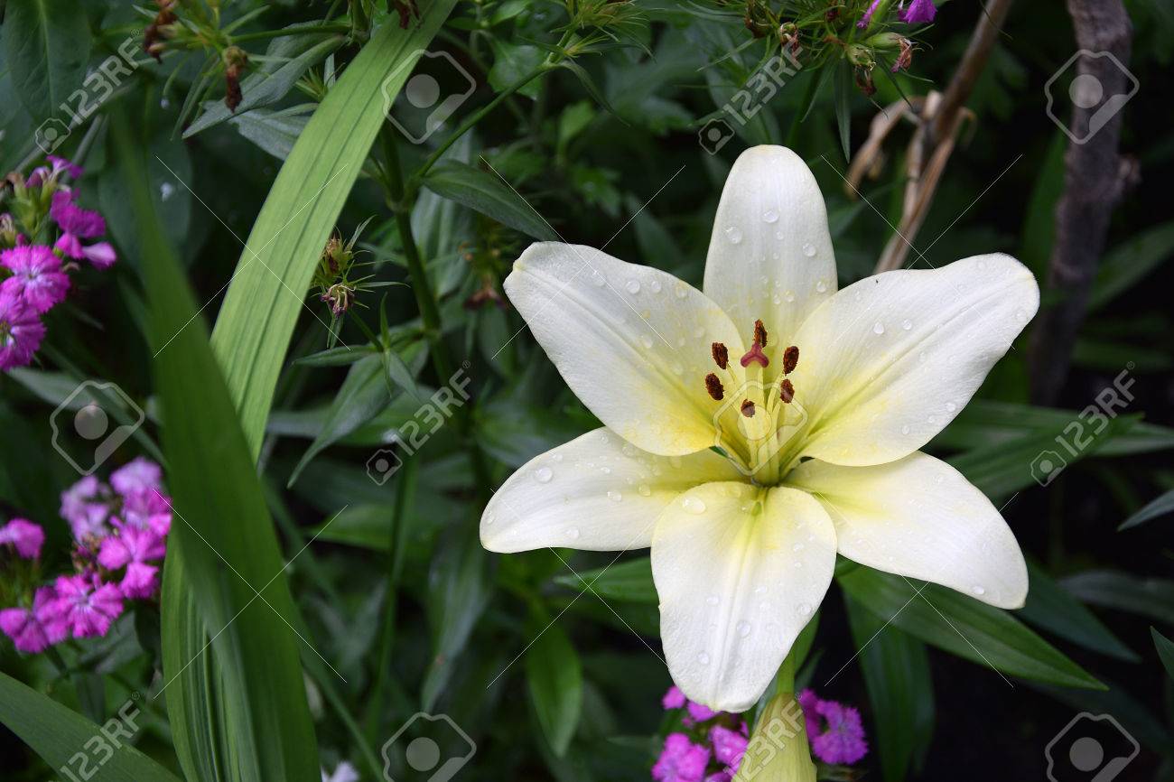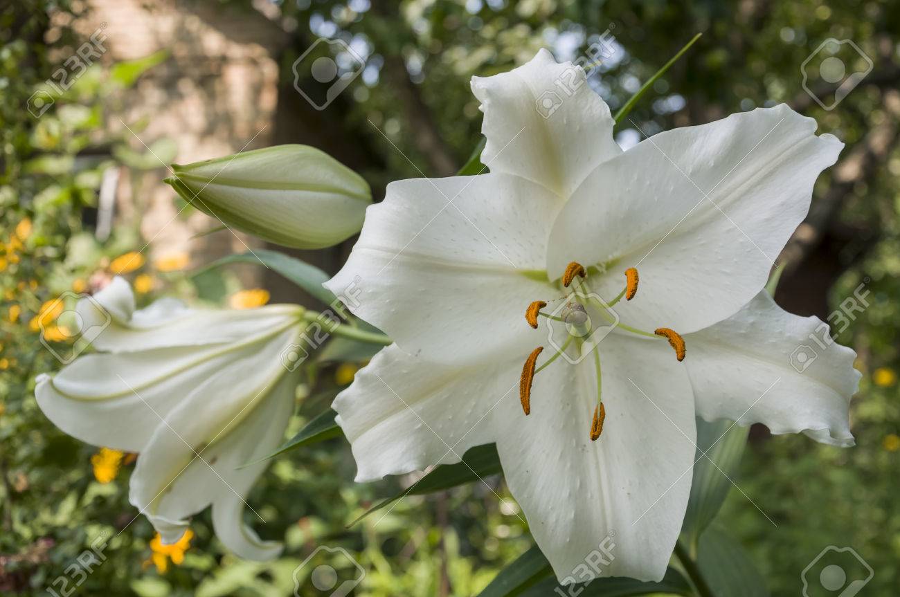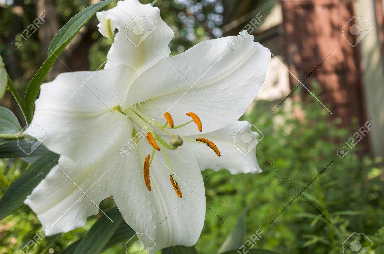 Immagini Stock Il Giglio Bianco E In Fiore Nel Giardino Fiori Di Estate Image 80888894