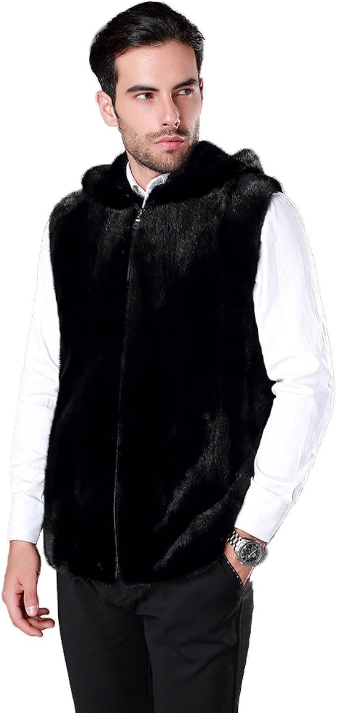 Fur Story Fs16969 Uomo Visone Gilet Di Pelliccia Con Cappuccio Nero 48 Amazon It Abbigliamento