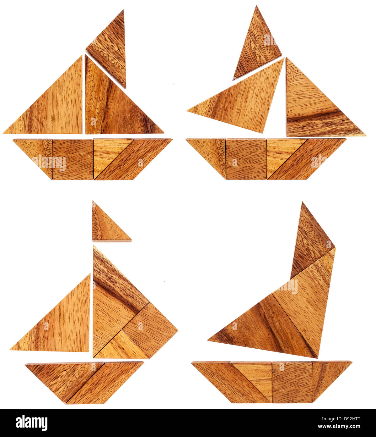 Quattro Immagini Astratte Delle Barche A Vela Costruito Da Sette Tangram Pezzi Di Legno Un Cinese Tradizionale Gioco Di Puzzle Foto Stock Alamy