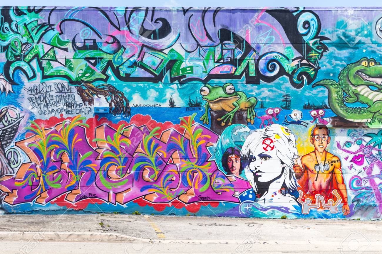 Immagini Stock Street Art Graffiti Illustrazione Astratta Creativa Sui Muri Della Citta Di Miami Usa Urbano Cultura Contemporanea Image 72722248