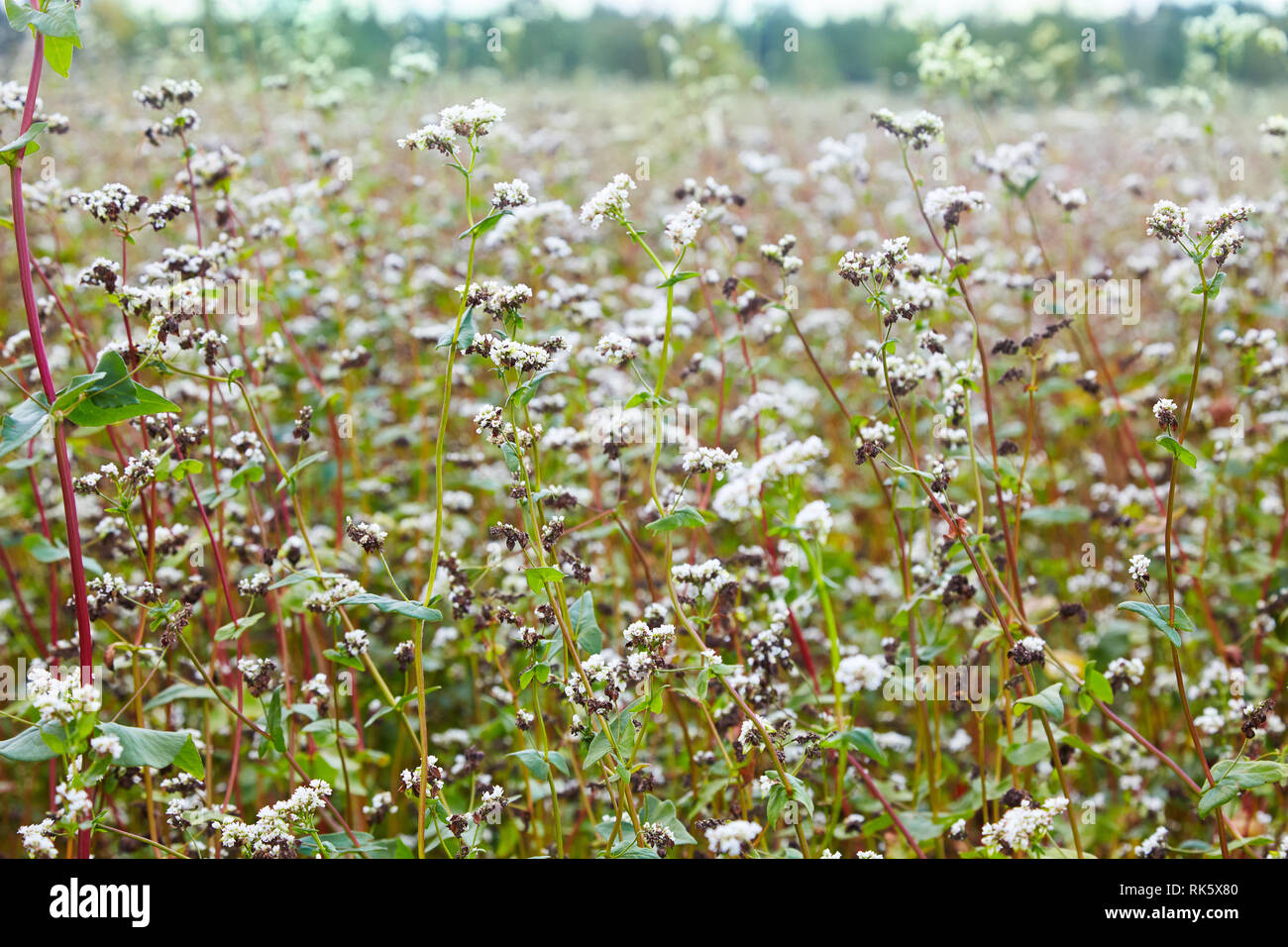 Fioritura Crescente Pianta Di Grano Saraceno In Campo Agricolo Fioritura Crescente Pianta Di Grano Saraceno In Campo Agricolo Fiore Di Grano Saraceno E Attirare Polli Foto Stock Alamy