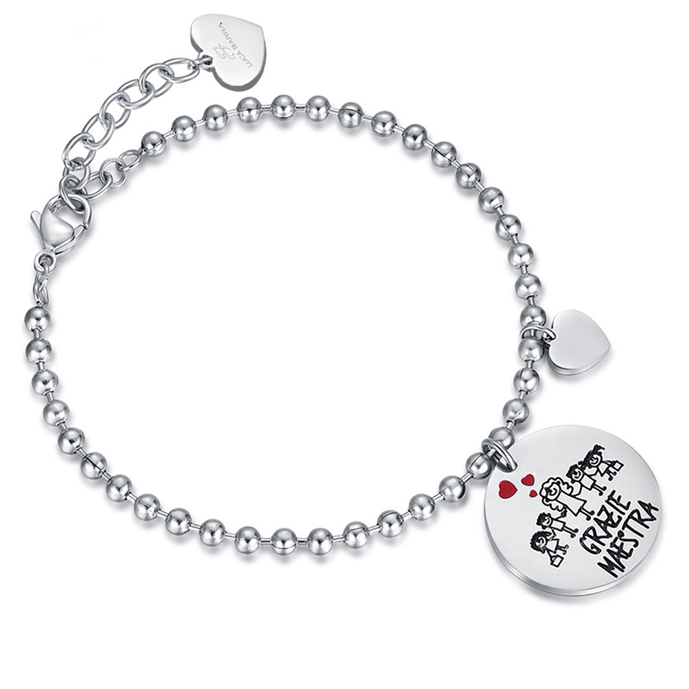 Bracciale Luca Barra Script Ciondolo Incisione Grazie Maestra Acciaio Bk1787