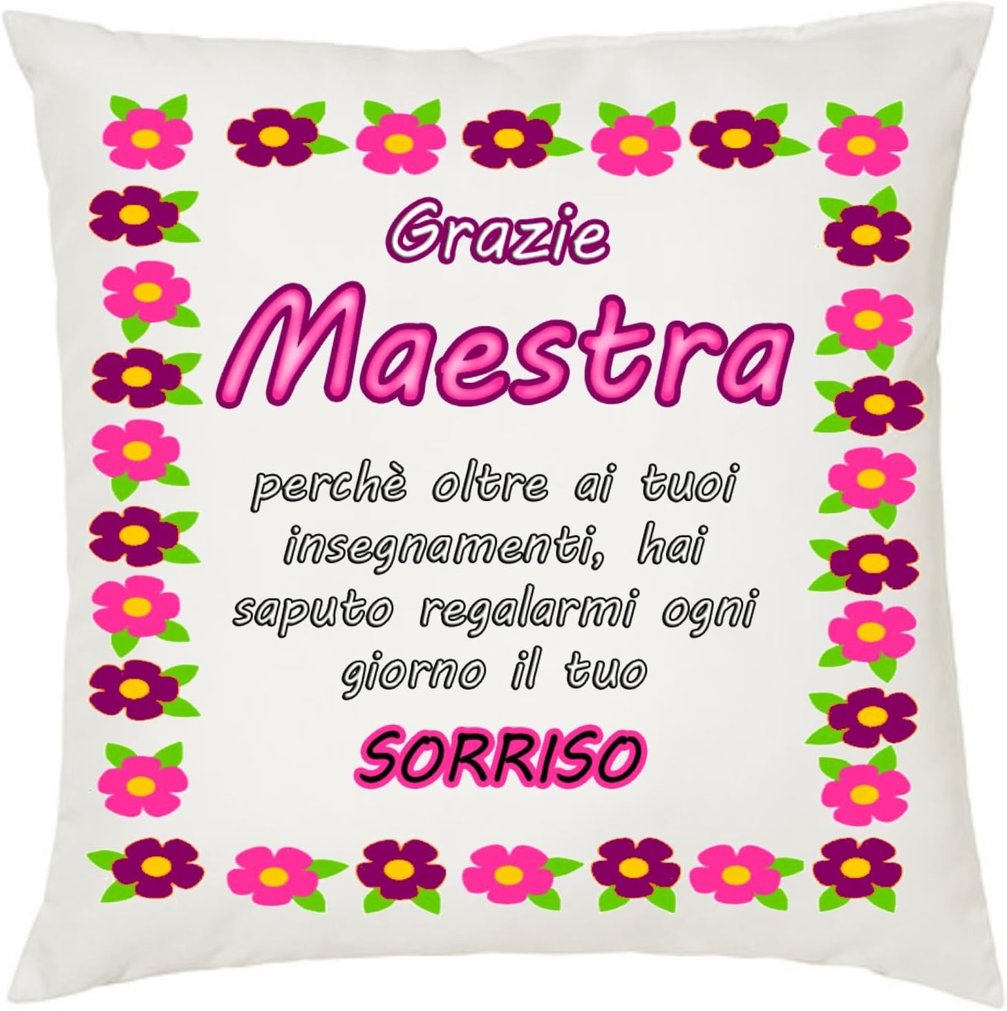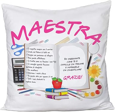 Cuscino 40 X 40 Cm Scritta Grazie Maestra Insegnante Scuola Idea Regalo Fiori Amazon It Casa E Cucina