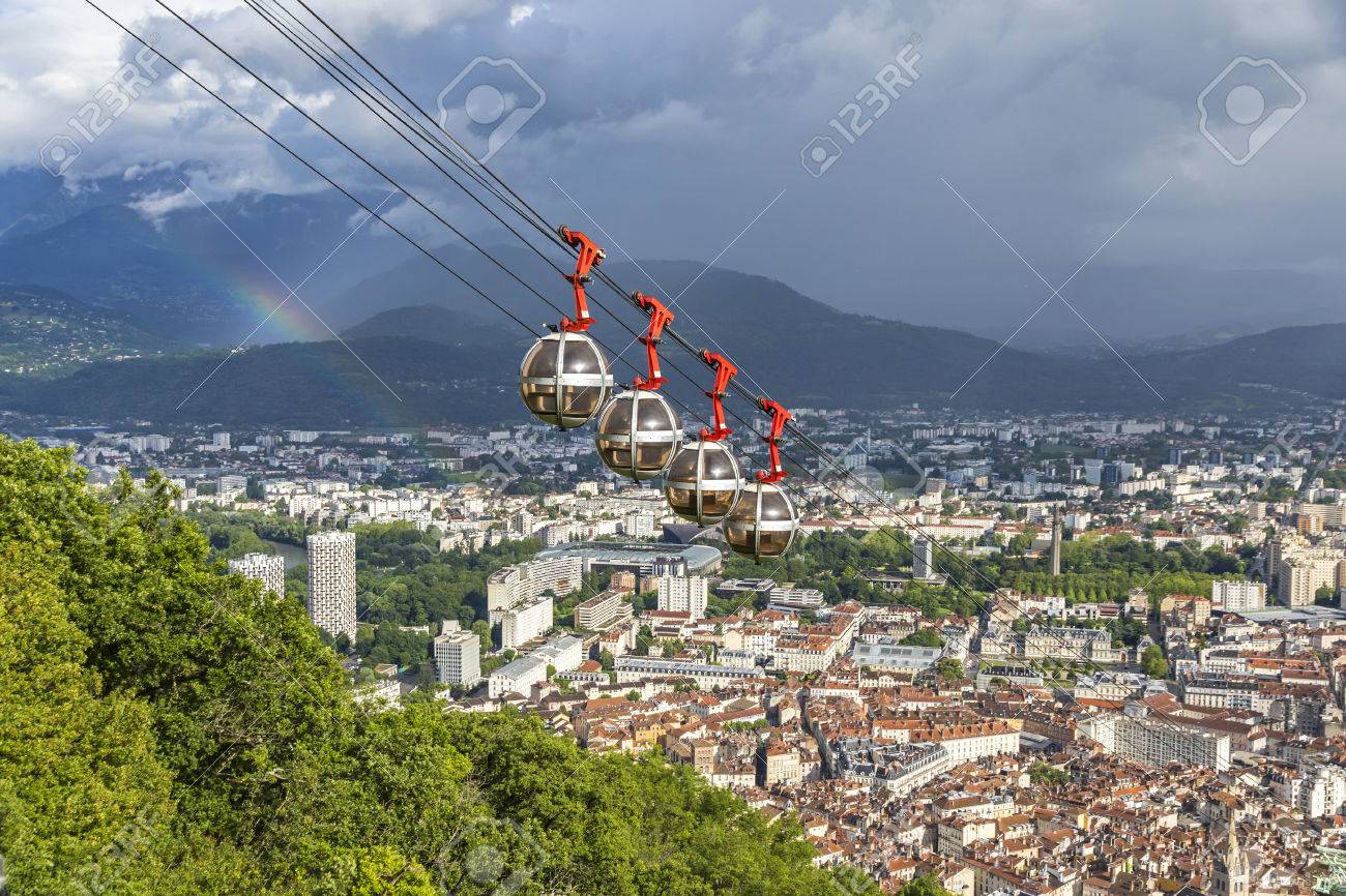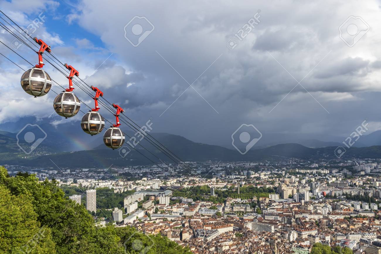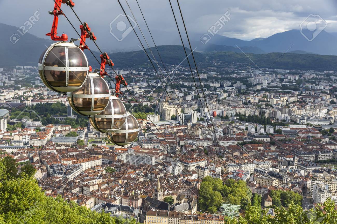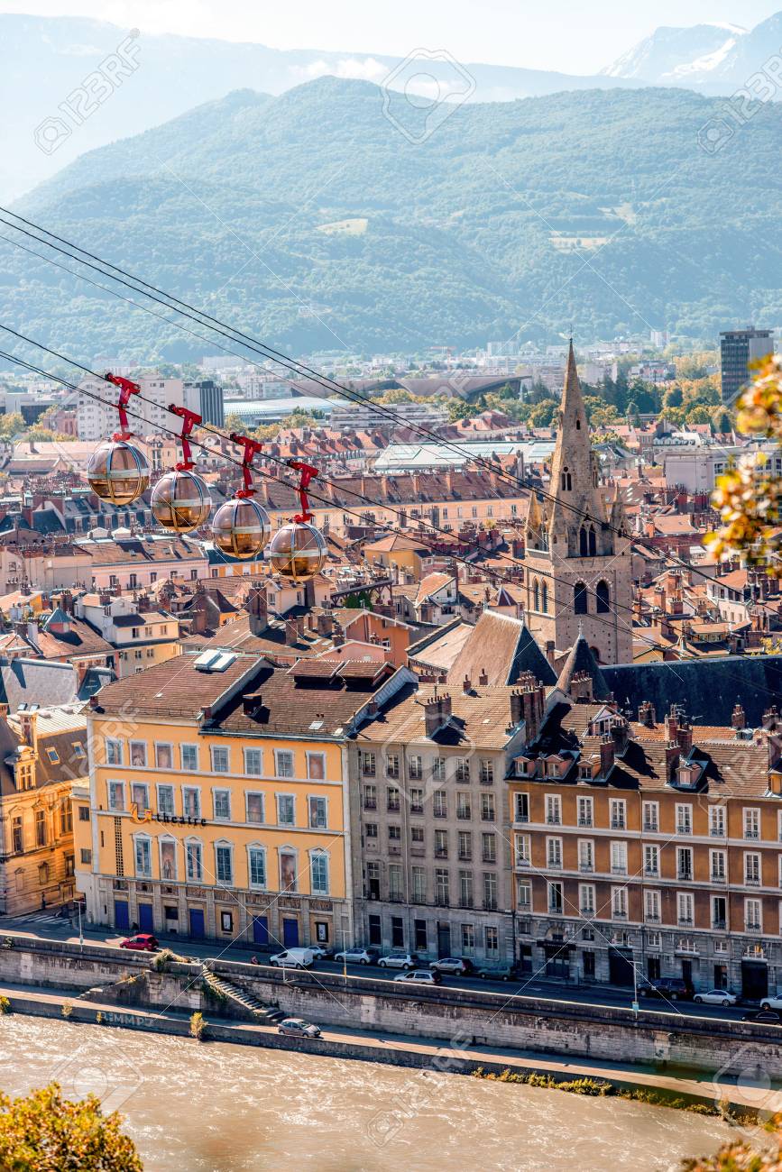 Immagini Stock Pittoresca Veduta Aerea Della Citta Di Grenoble In Francia Grenoble Bastille Funivia In Primo Piano Francese Telepherique Di Grenoble Bastille Image 61724063