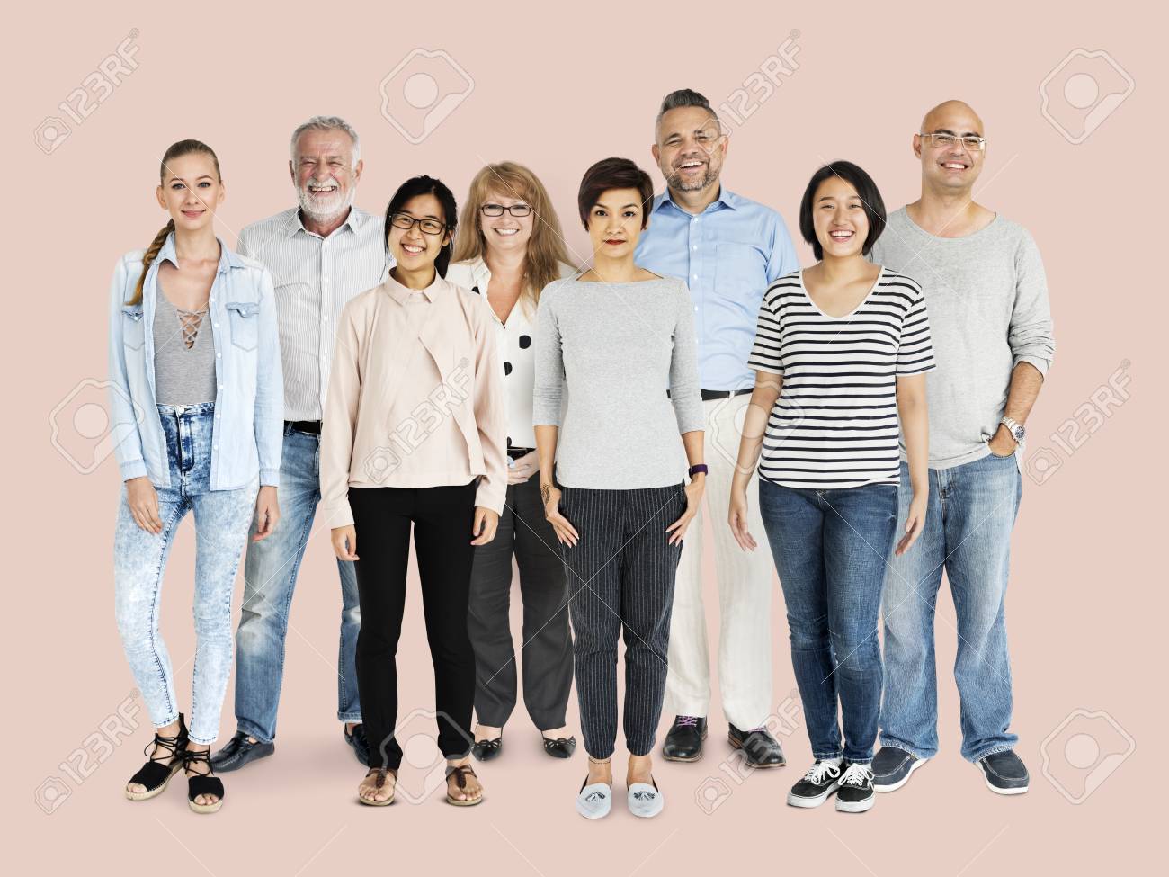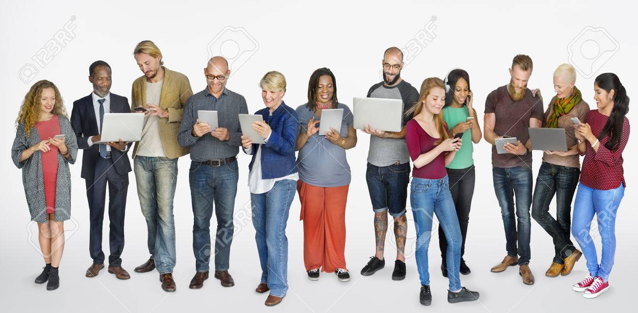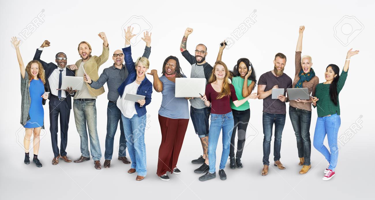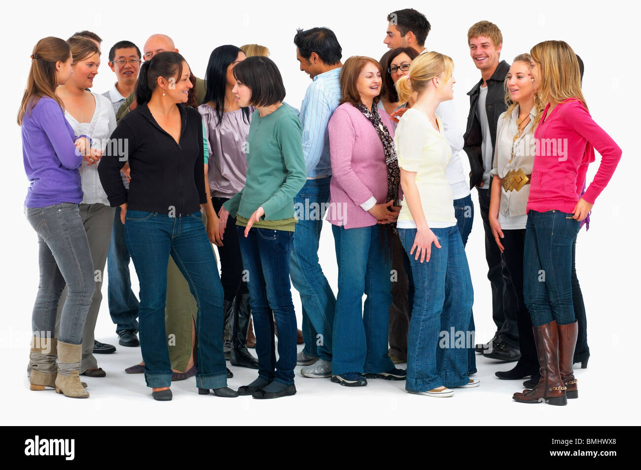 Gruppo Di Persone Che Si Affaccia Su Bianco Foto Stock Alamy