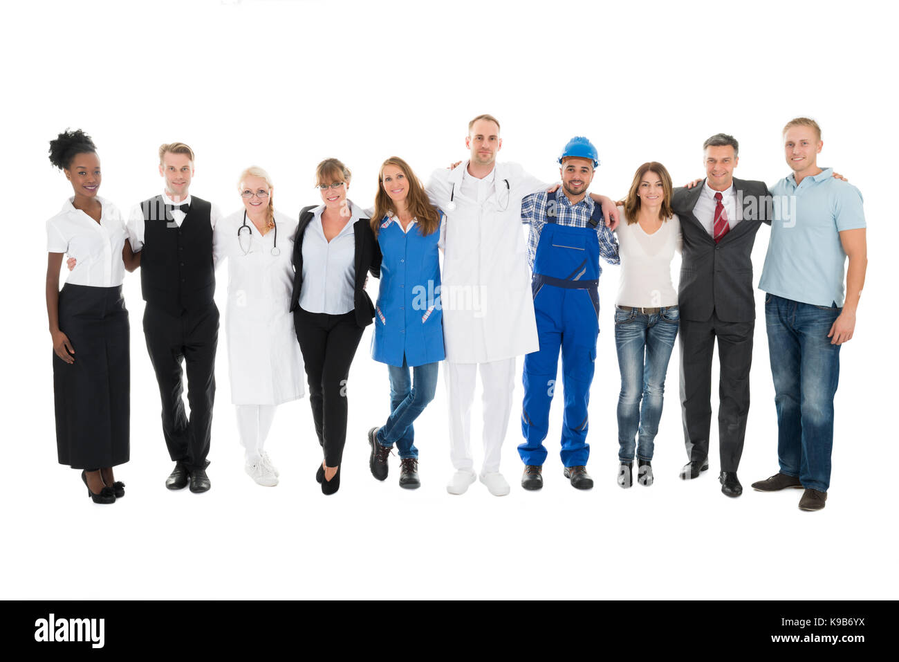 Ritratto Di Gruppo Di Persone Con Diverse Professioni In Piedi Insieme Contro Uno Sfondo Bianco Foto Stock Alamy