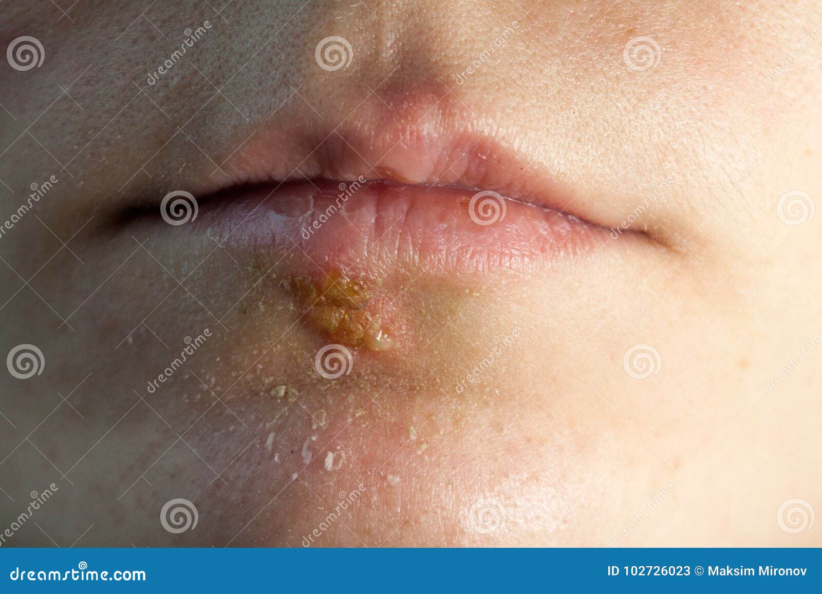 Herpes Sulla Bocca Della Giovane Donna Immagine Stock Immagine Di Infezione Ragazza 102726023