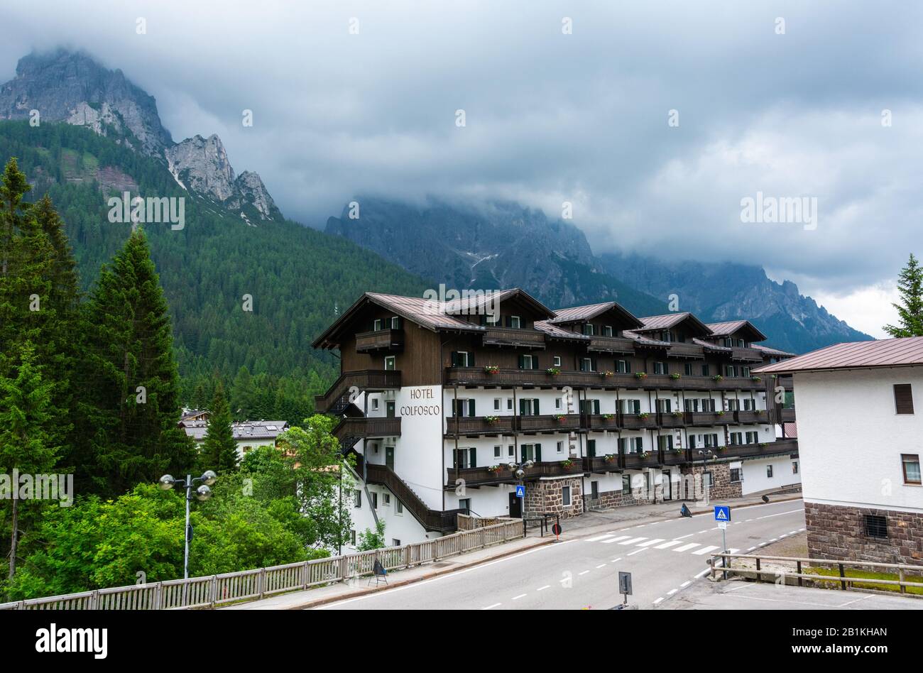 San Martino Di Castrozza Trentino Italy July 3 2016 Street View In San Martino Di Castrozza Mountain Resort In Italy With Hotel Colfosco And Th Stock Photo Alamy