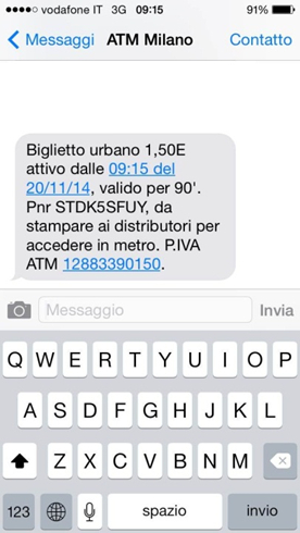 Biglietto Con Sms Atm Azienda Trasporti Milanesi