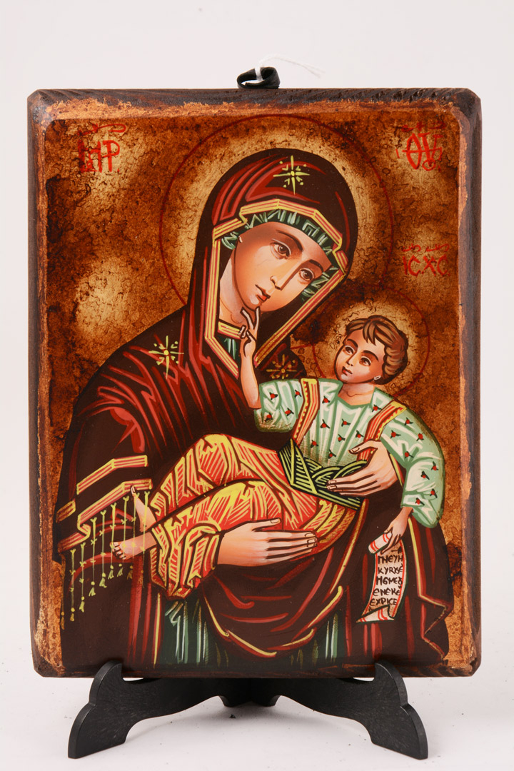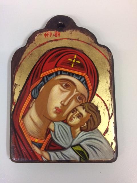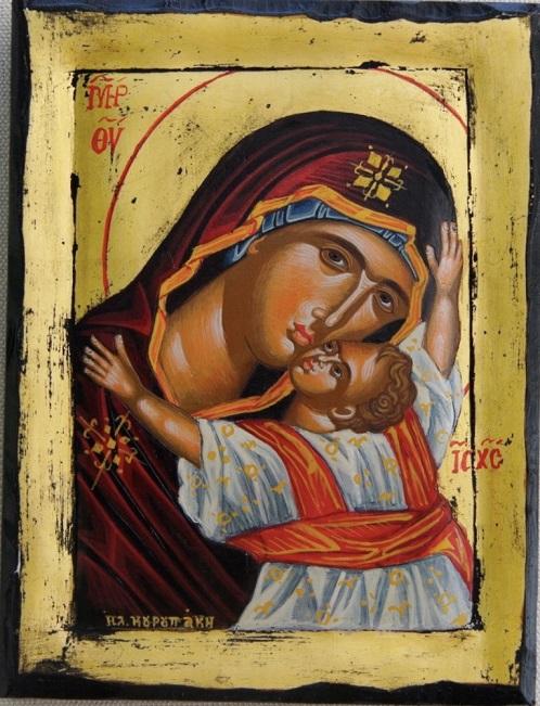 Icona Madonna Con Bimbo Gesu Dipinta A Mano Cm 22x32