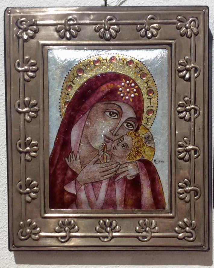 Icona Madonna Con Bambino In Argento E Smalto Pietrobon