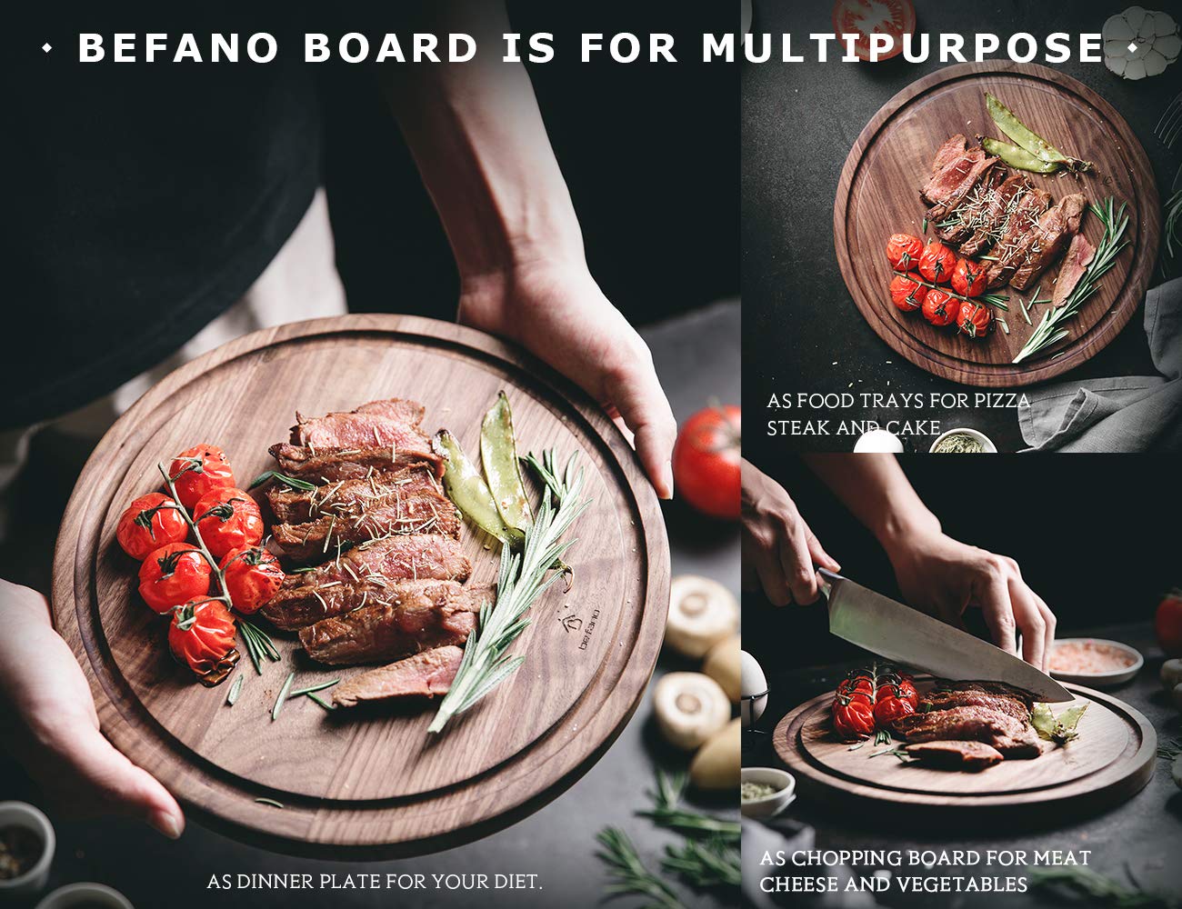 Befano Round Black Walnut Cutting Board For Kitchen With Deep Juice Groove Cheese Board Charcuterie Board Serving Tray Chopping Board For Meat Bread Gift Box Included 12 5x0 8inches Amazon Sg Home