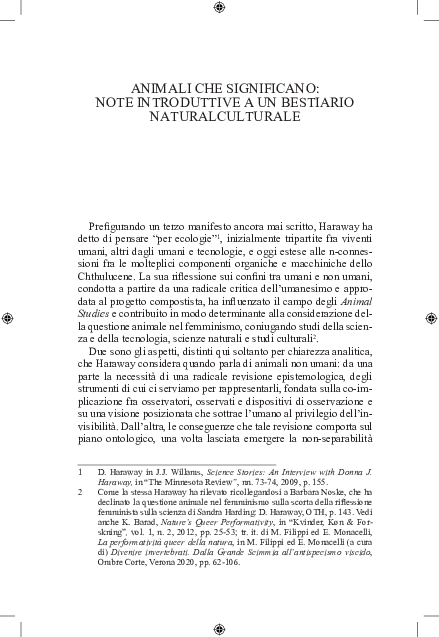 Pdf Bestiario Haraway Per Un Femminismo Multispecie Federica Timeto Academia Edu