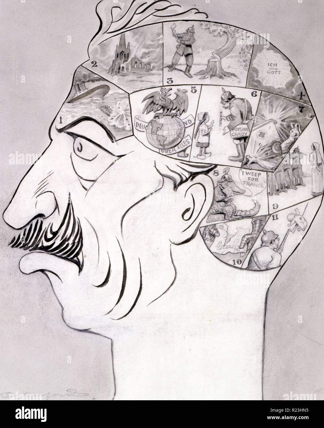 Frenzylogical Grafico I Guerra Mondiale Disegno Animato E Un Grafico Phrenological Tedesco Del Cervello Oliver Herford