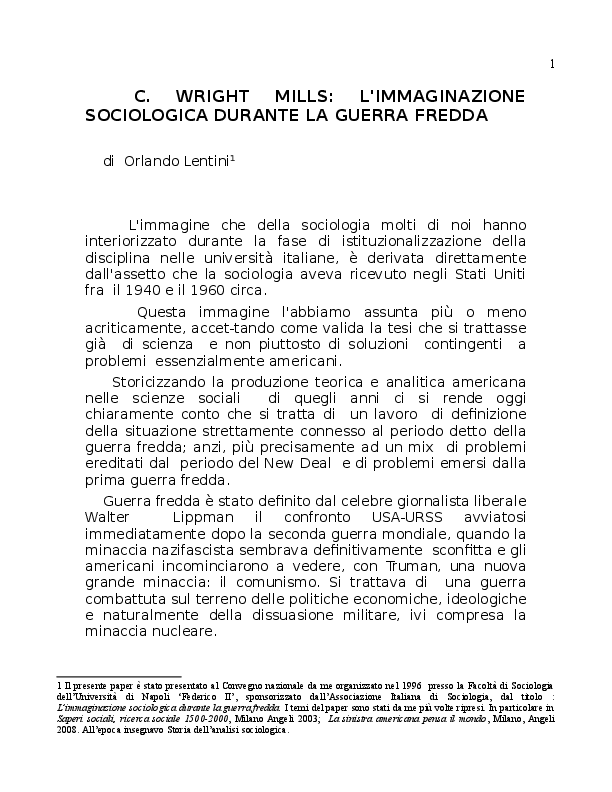 Doc C Wright Mills E L Immaginazione Sociologica Durante La Guerra Fredda Orlando Lentini Academia Edu