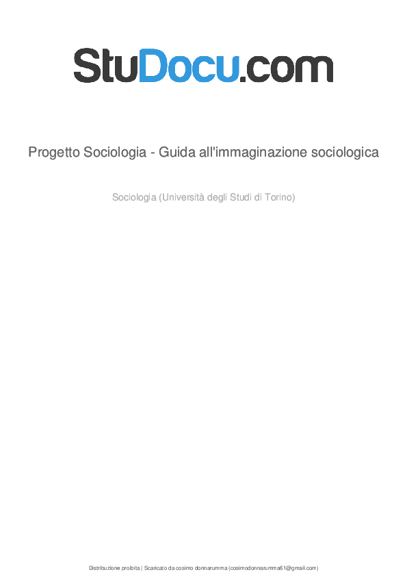 Progetto Sociologia L Immaginazione Sociologica Studocu