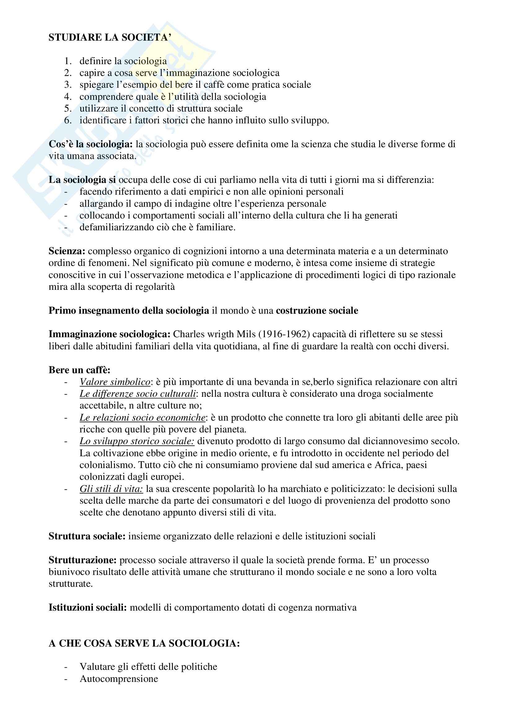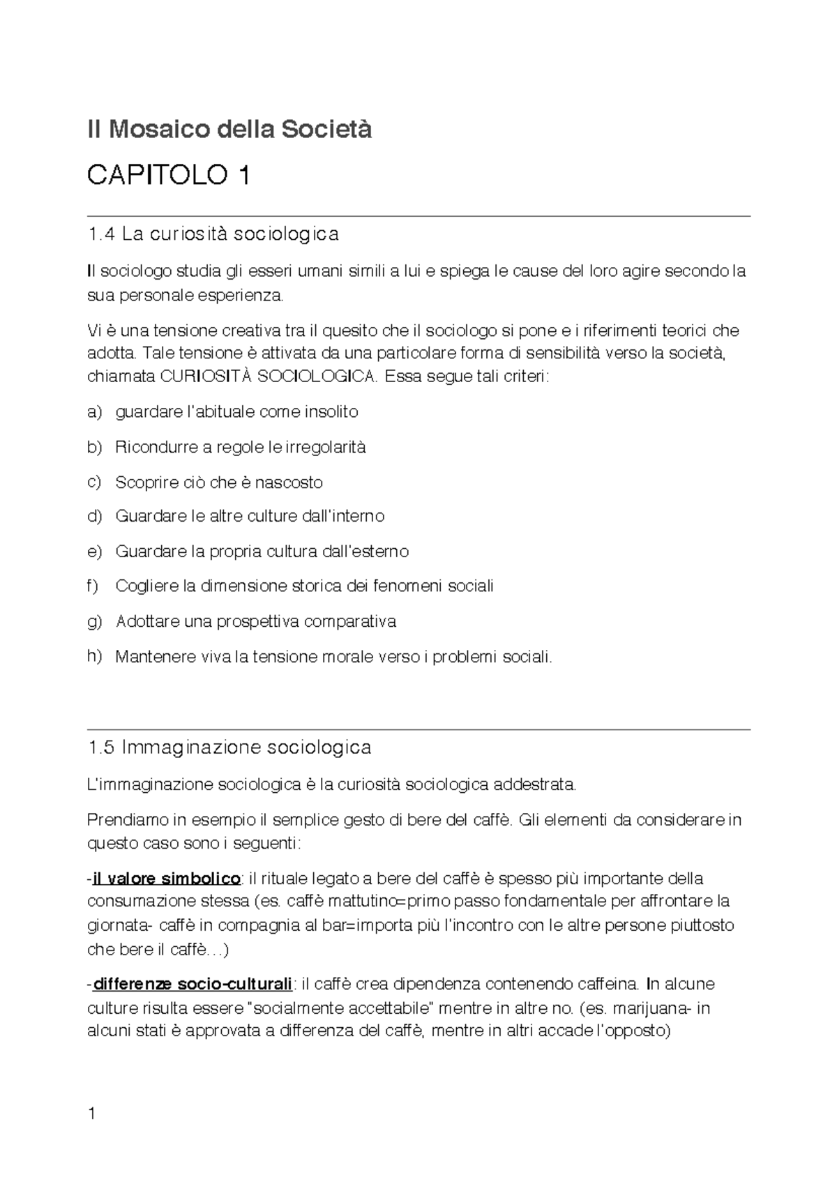 Capitolo 1 Riassunto Sociologia Generale Studocu