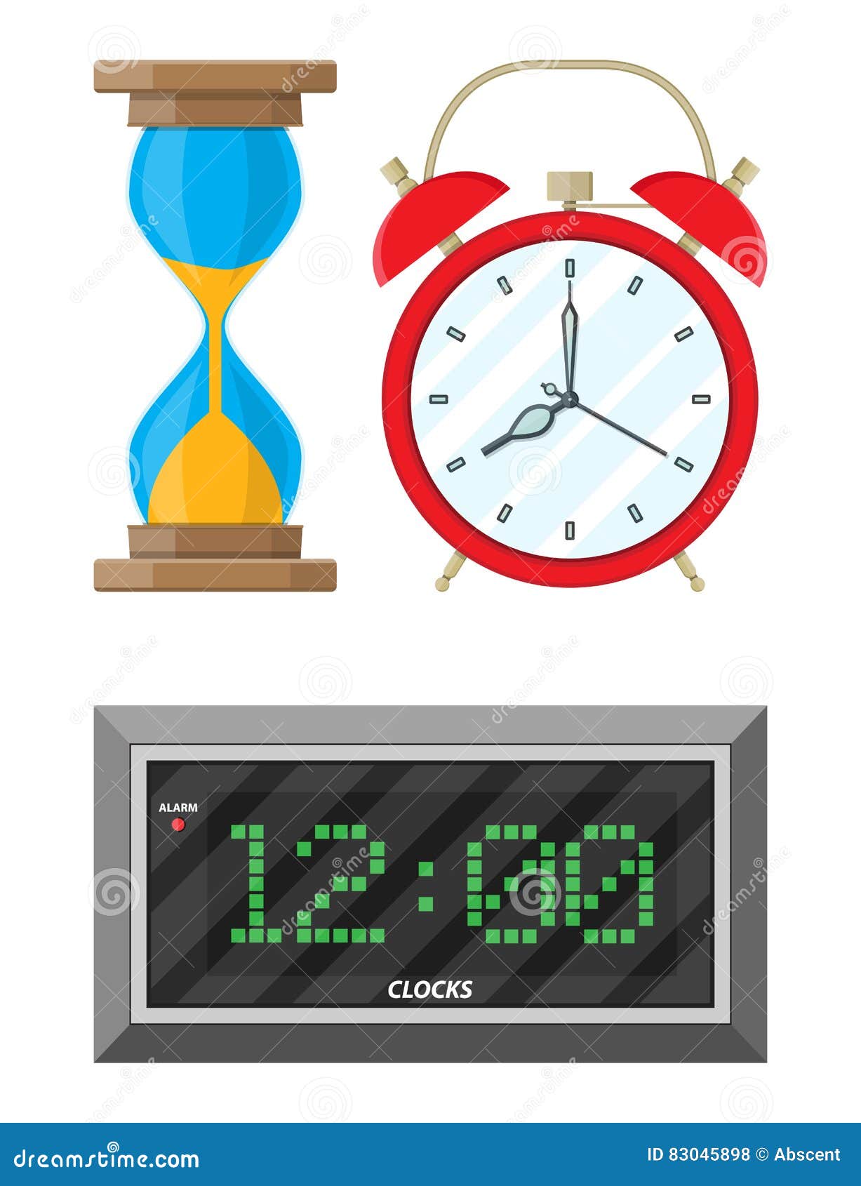 Orologi Impostati Orologio Analogico E Digitale Della Clessidra Illustrazione Vettoriale Illustrazione Di Grafico Digitale 83045898