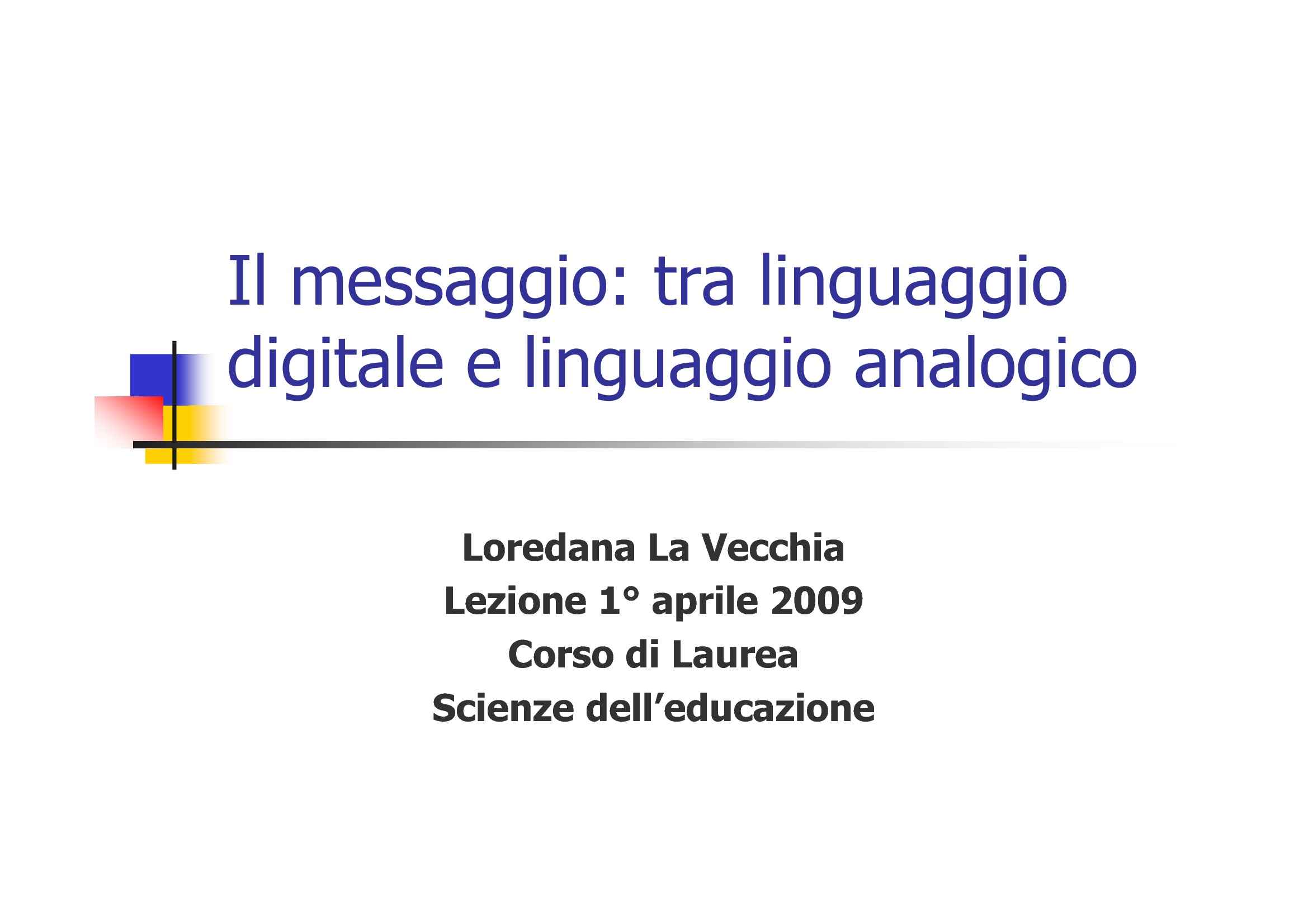 Messaggio Linguaggio Digitale E Analogico Dispense