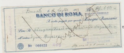 Banco Di Roma 1959 Assegno Bancario Annullato Pinerolo Ebay