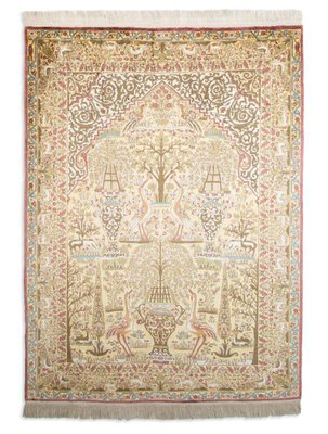 Egyptian Oriental Floral Golden Beige Silk Rug With Border Garden Of Paradise Pattern 1960s In Vendita Su Pamono