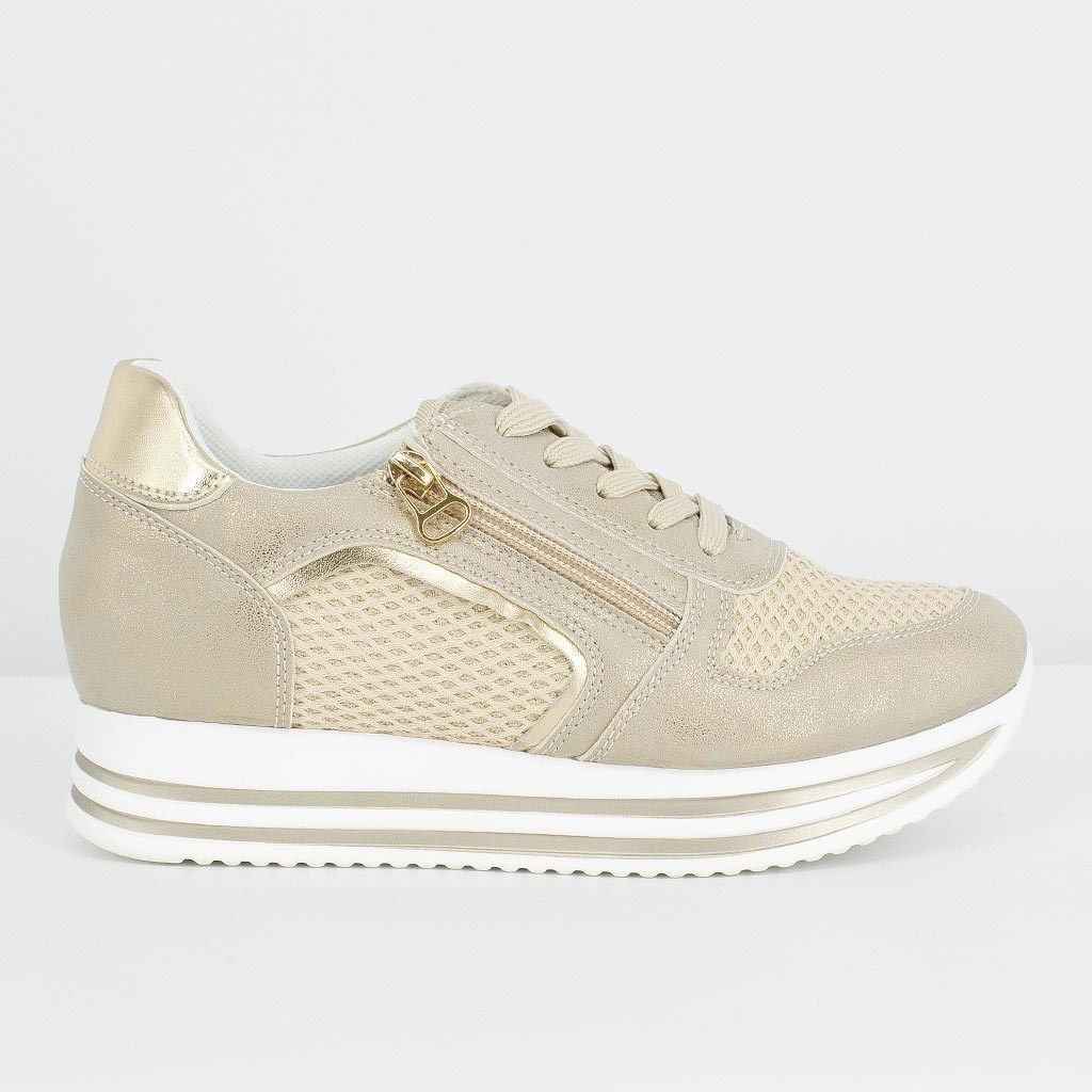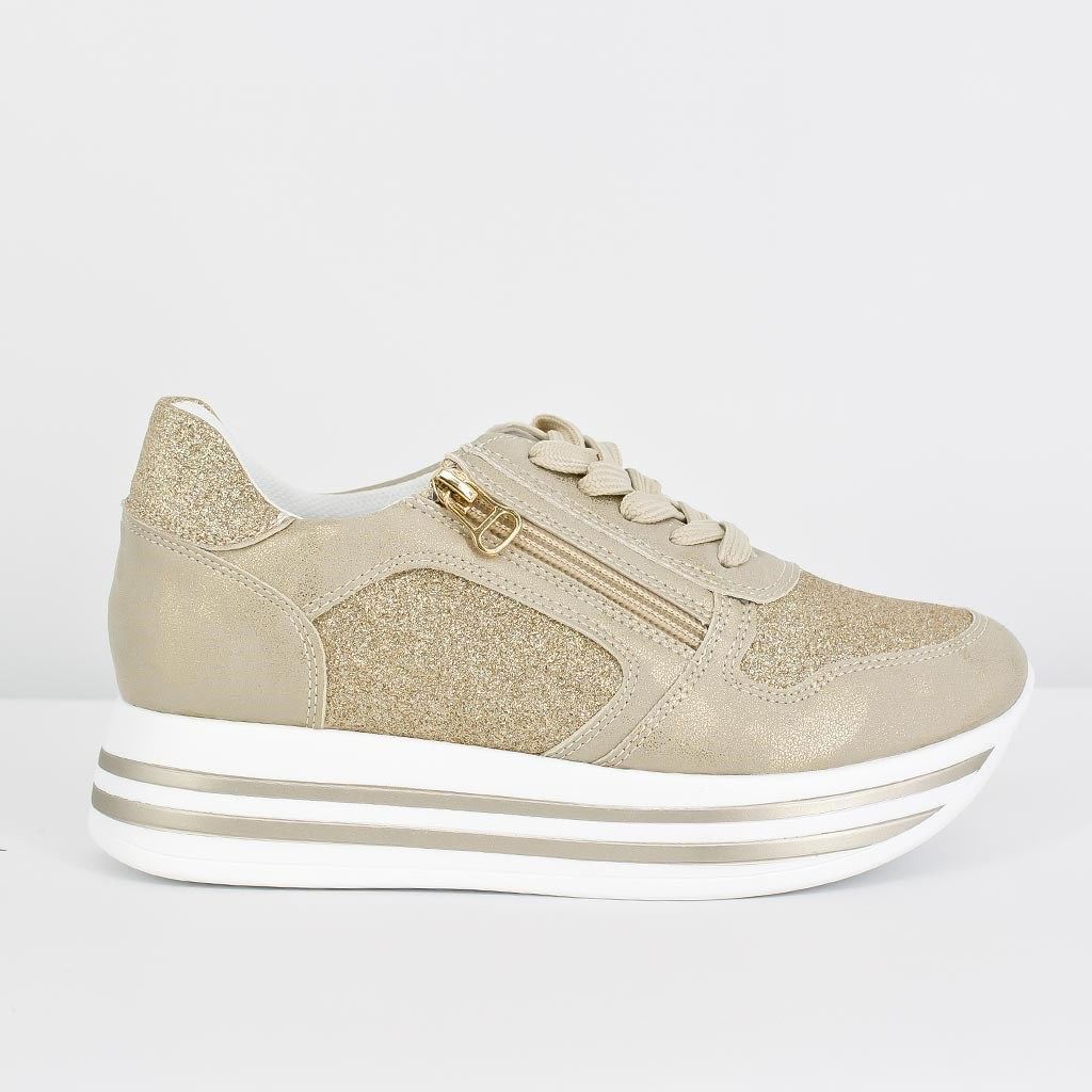Globo E Commerce Calzature Abbigliamento Sport Intimo Accessori Sneakers Beige Con Dettagli Glitter Zip Laterale E Lacci Frontali