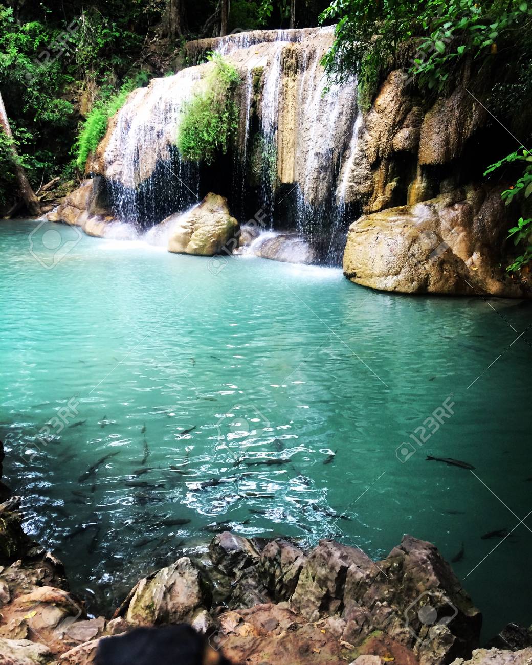 Immagini Stock Priorita Bassa Della Cascata Con Acqua Libera Cascata Tailandia Di Erawan Image 80645152