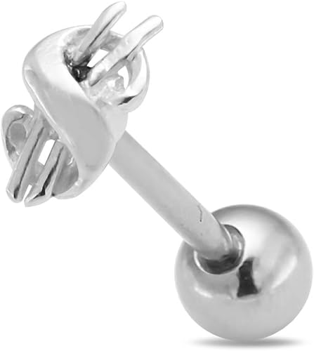 Piercing Per Lingua In Argento Sterling Con Simbolo Del Dollaro Americano Calibro 14 In Acciaio Chirurgico 316l Amazon It Gioielli