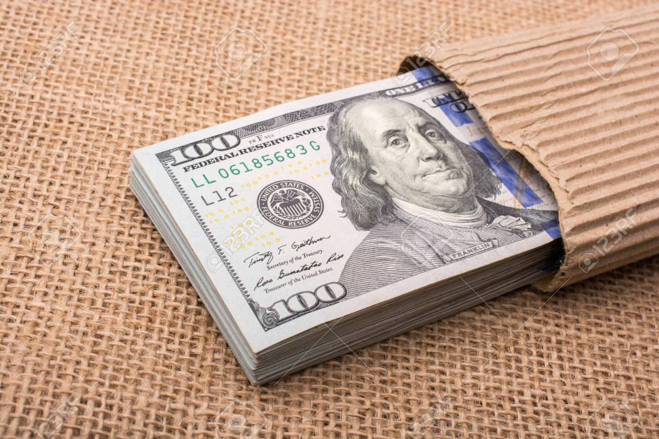 Immagini Stock Banconota Di Dollaro Del Dollaro Americano Parzialmente Avvolto In Cartone Image 85771358