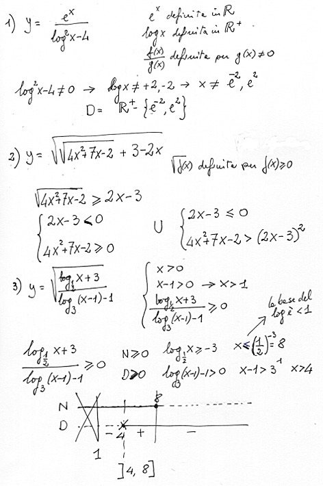 Dominio Delle Funzioni Y Frac E X Log 2 X 4 Y Sqrt Sqrt 4x 2 7x 2 3 2x Y Sqrt Frac Log 1 2 X 3 Log 3 X 1 1 Matematicamente