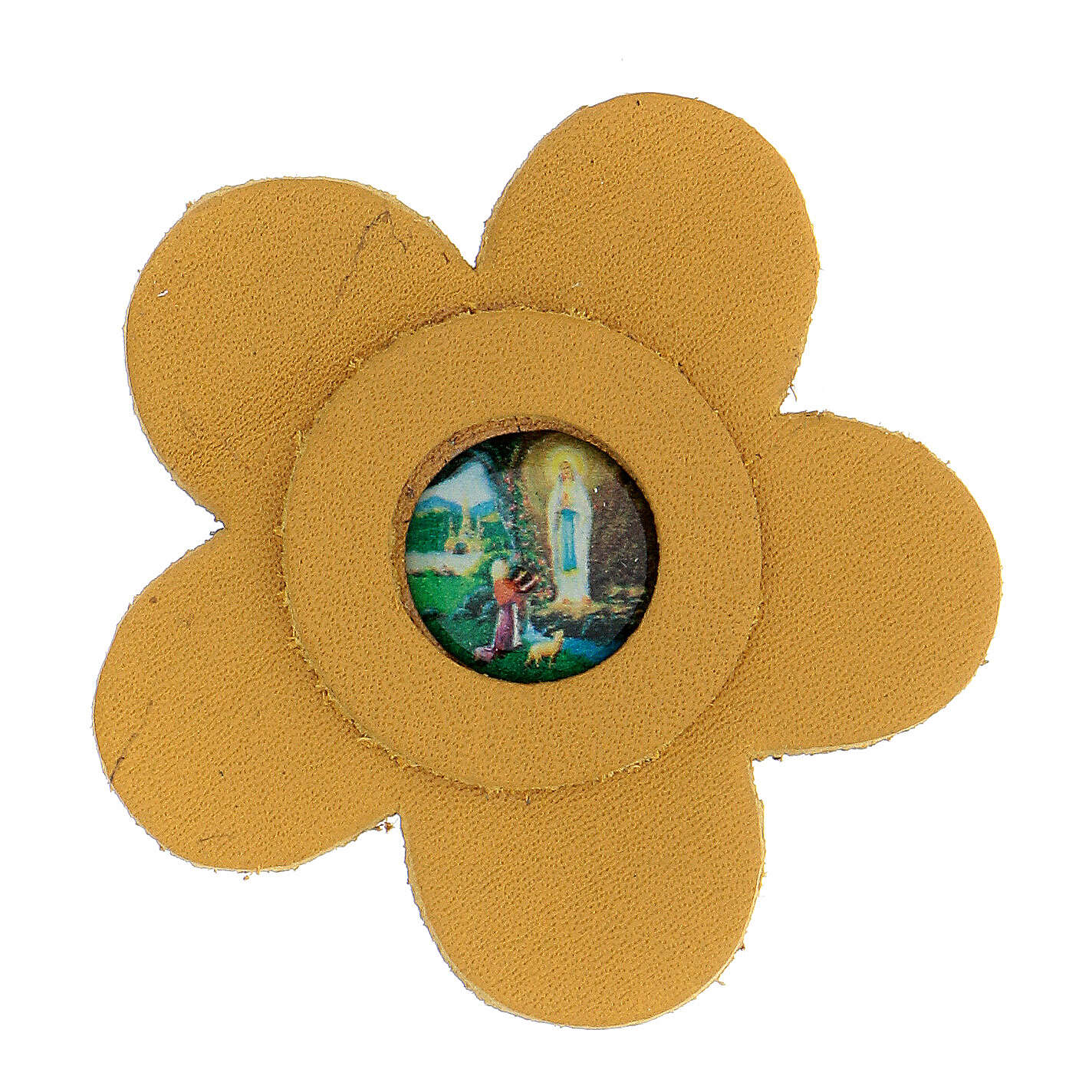 Magnete Fiore Stilizzato Vera Pelle Gialla Madonna Lourdes 5 Cm Vendita Online Su Holyart
