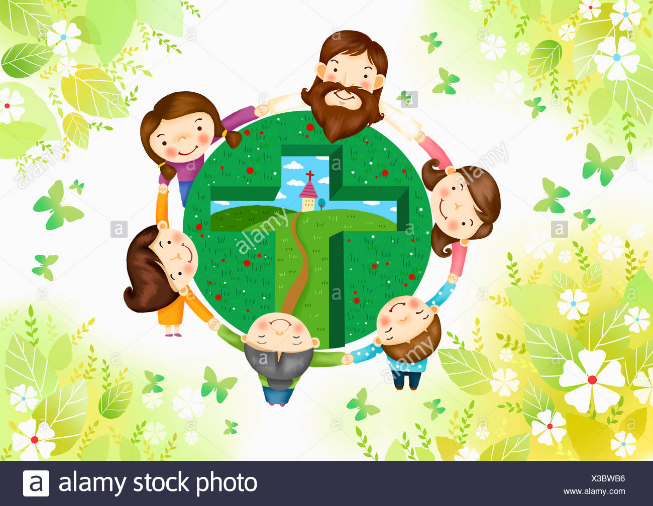 Gesu E I Bambini Si Tengono Per Mano Intorno Alla Croce Campo Foto Stock Alamy