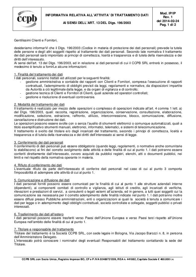 Informativa Relativa Al Trattamento Dei Dati 02 2014
