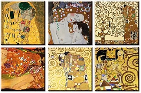 Time4art Set Di 6 Quadri Con Stampe Di Gustav Klimt L Albero Della Vita Il Bacio Ritratto Di Adele Bloch Bauer 50 X 50 Cm Amazon It Casa E Cucina
